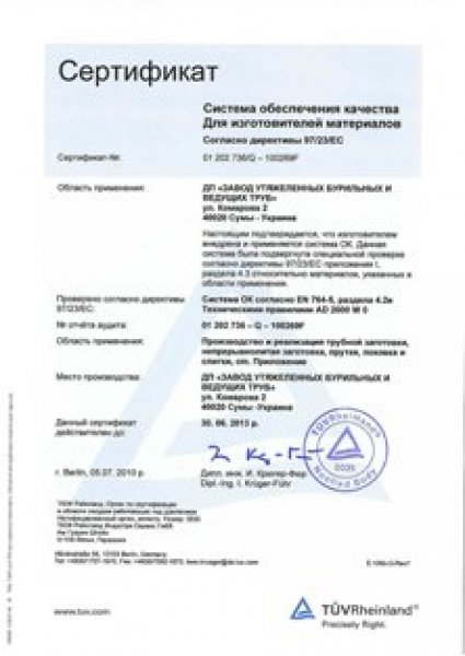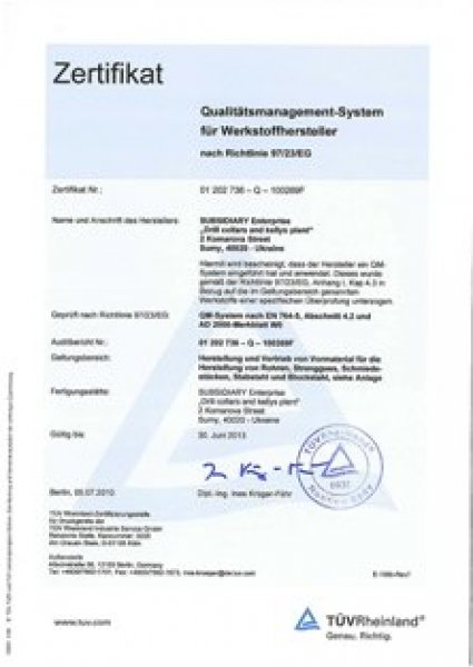Applicable quality management system fully responds to ISO 9001 standard which is proved by certificate issued by Bureau Veritas Quality International (international certification institution).